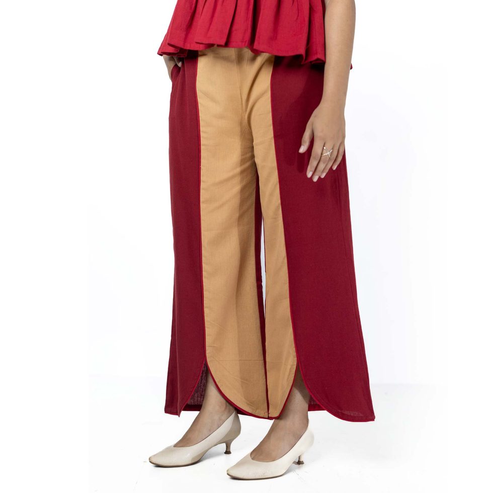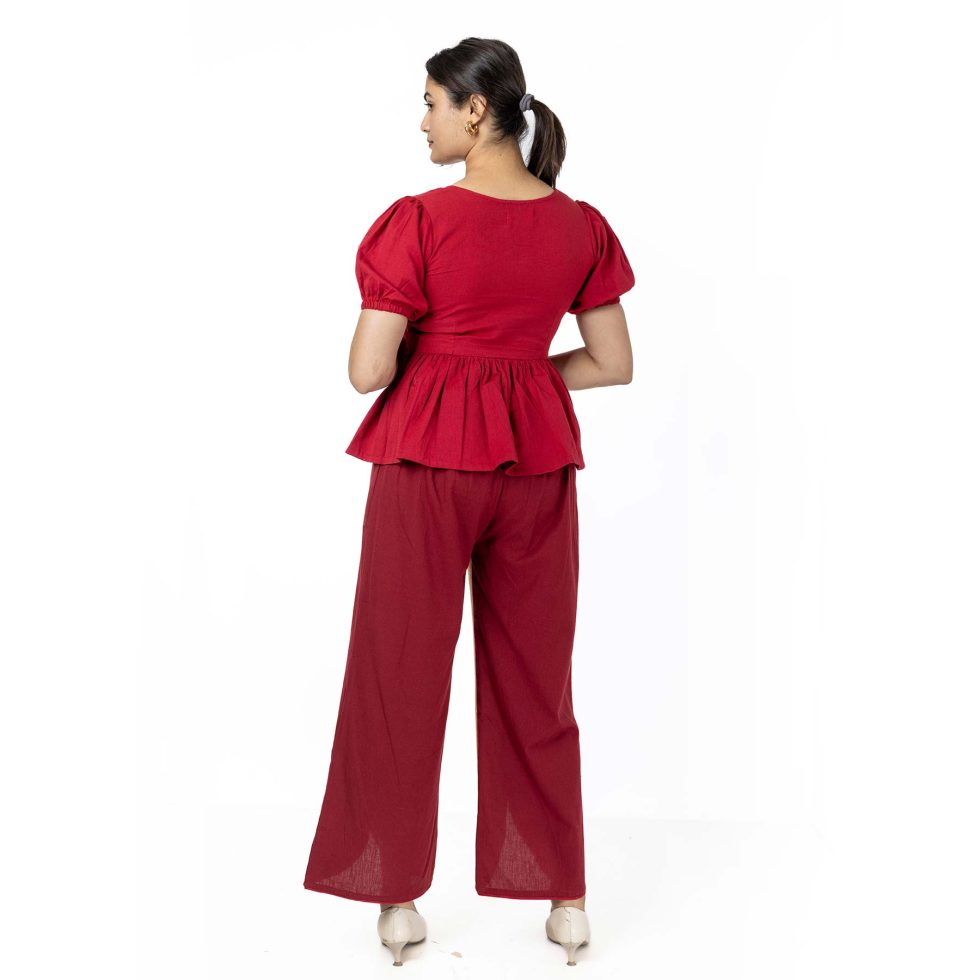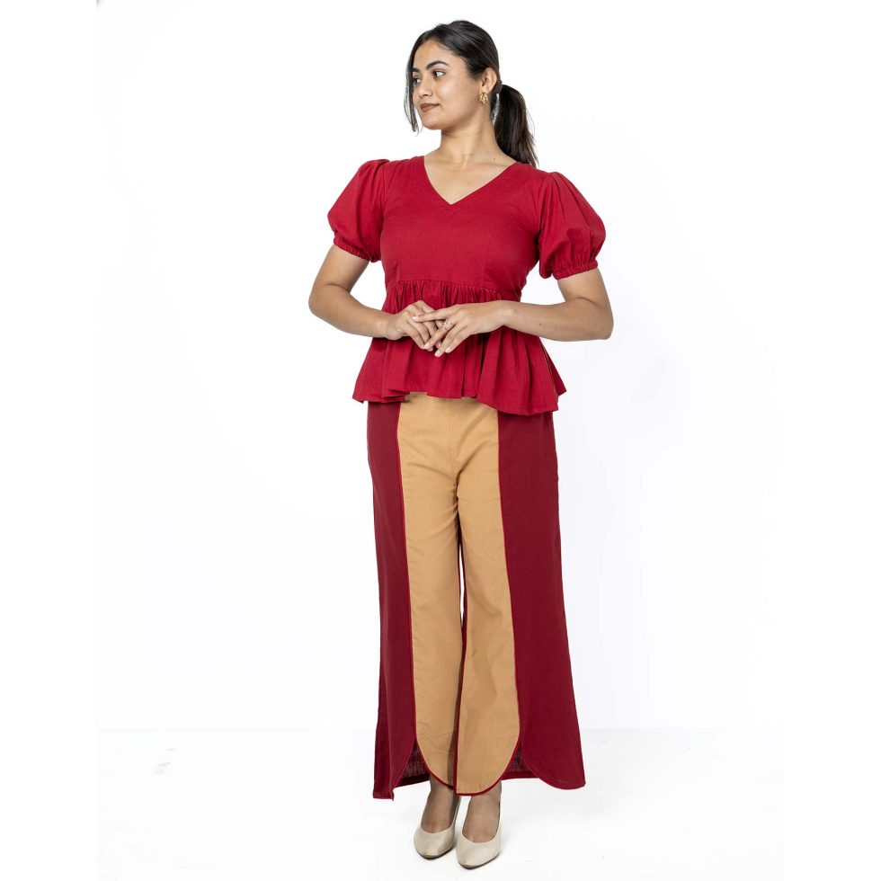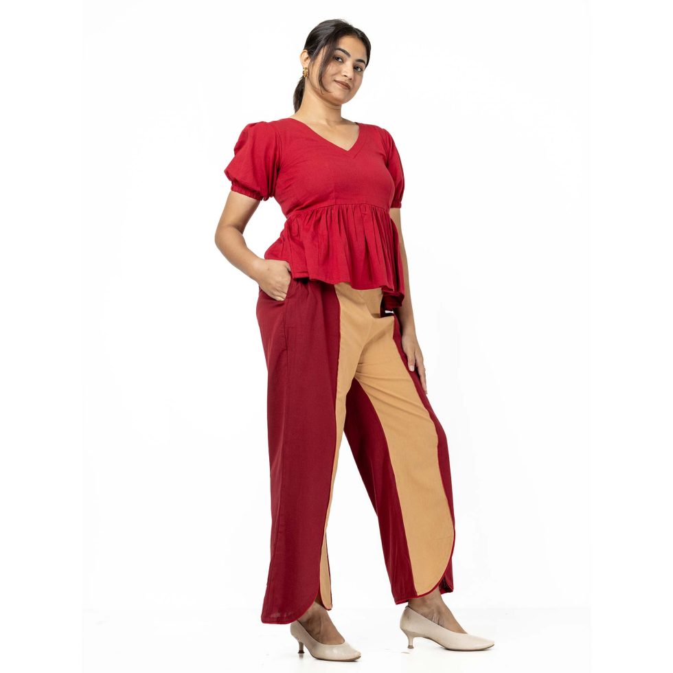 IRA Co-Ord Set- Maroon top & Maroon-Beige pant